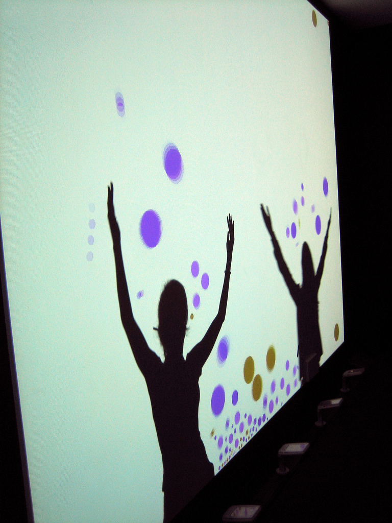 Complete information about this project can be found at the official Messa di Voce web site.High-resolution images of the Messa di Voce installation can be found at this Tmema Flickr photoset.