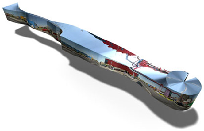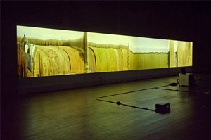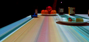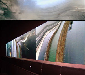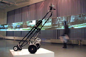 Japanese media artist Toshio Iwai has systematically explored the potential of the computer to create interactive and physical extensions of cinema. His astonishing project "Morphovision" may be regarded as a three-dimensional analogue to two-dimensional slit scanning. I am indebted to Alvaro Cassinelli for this insight. [This installation is a rare treat: see it by any means possible. -- Golan.]