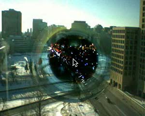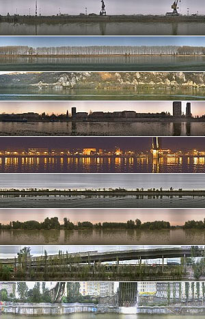 Mitchell Whitelaw is an academic, writer and artist who created these two slit-scan based data visualizations of the sky and street in Canaberra, Australia. Included in his "Watching the Sky" page is an essay he wrote for the UK Journal "Photographies" which looks at how we interpret pattern and change in the environment, and the role of data in that process. The circular image abuve uses slit-scanning to map the brightness of the sky throughout the cycle of a day, while the lower image compiles ten thousand images of a Canberra streetfront, one image per minute for over a week, into a navigable interface.